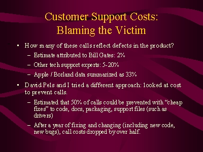 Rationalizations like this are cute. I learned a powerful lesson on the other side when I did an experiment with David Pels, then a software support manager at a time when I was a project manager of a product that yielded a lot of support calls.
