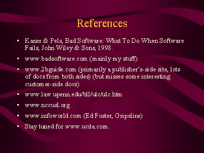 - Kaner & Pels, Bad Software: What To Do When Software Fails, John Wiley & Sons, 1998.